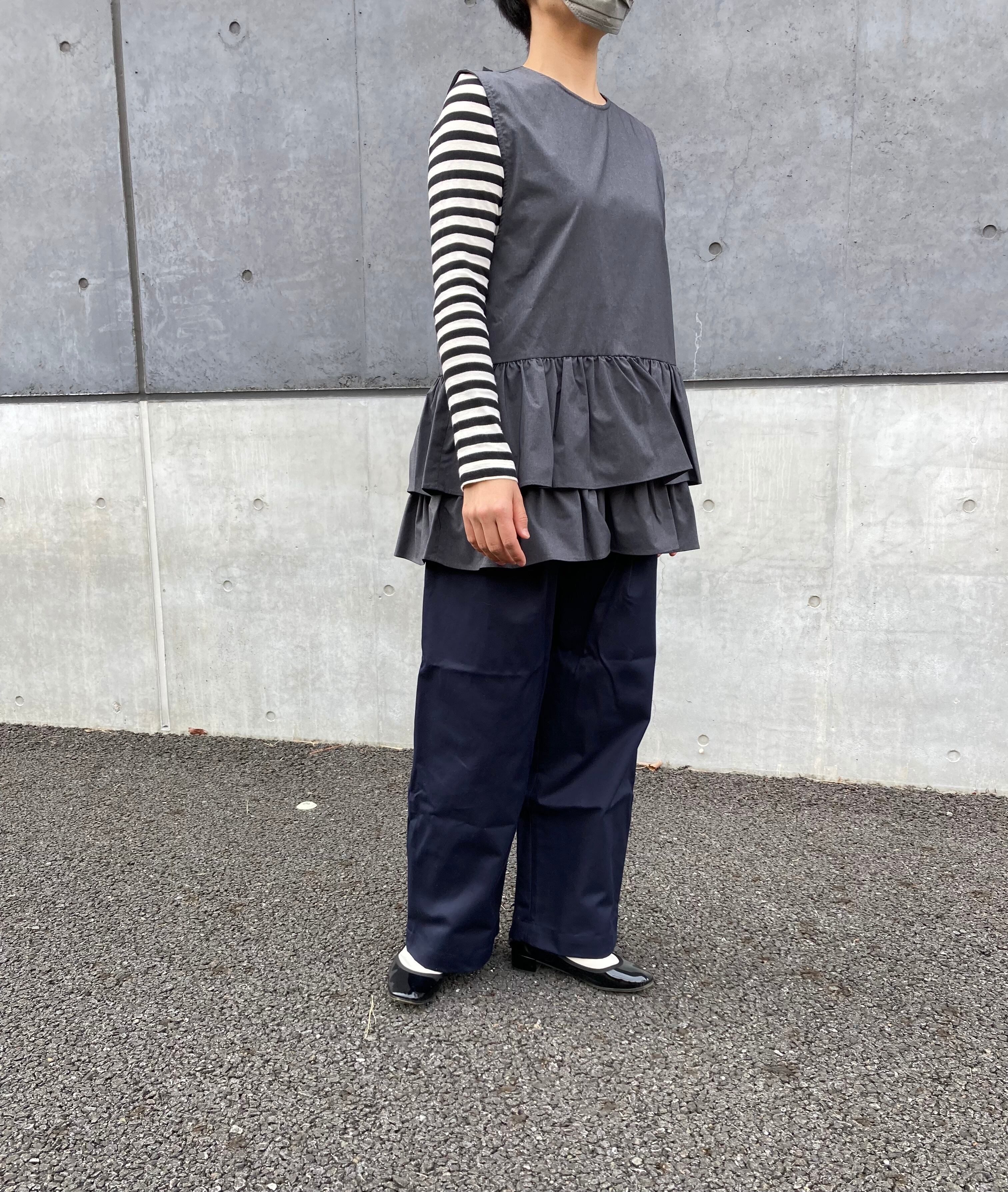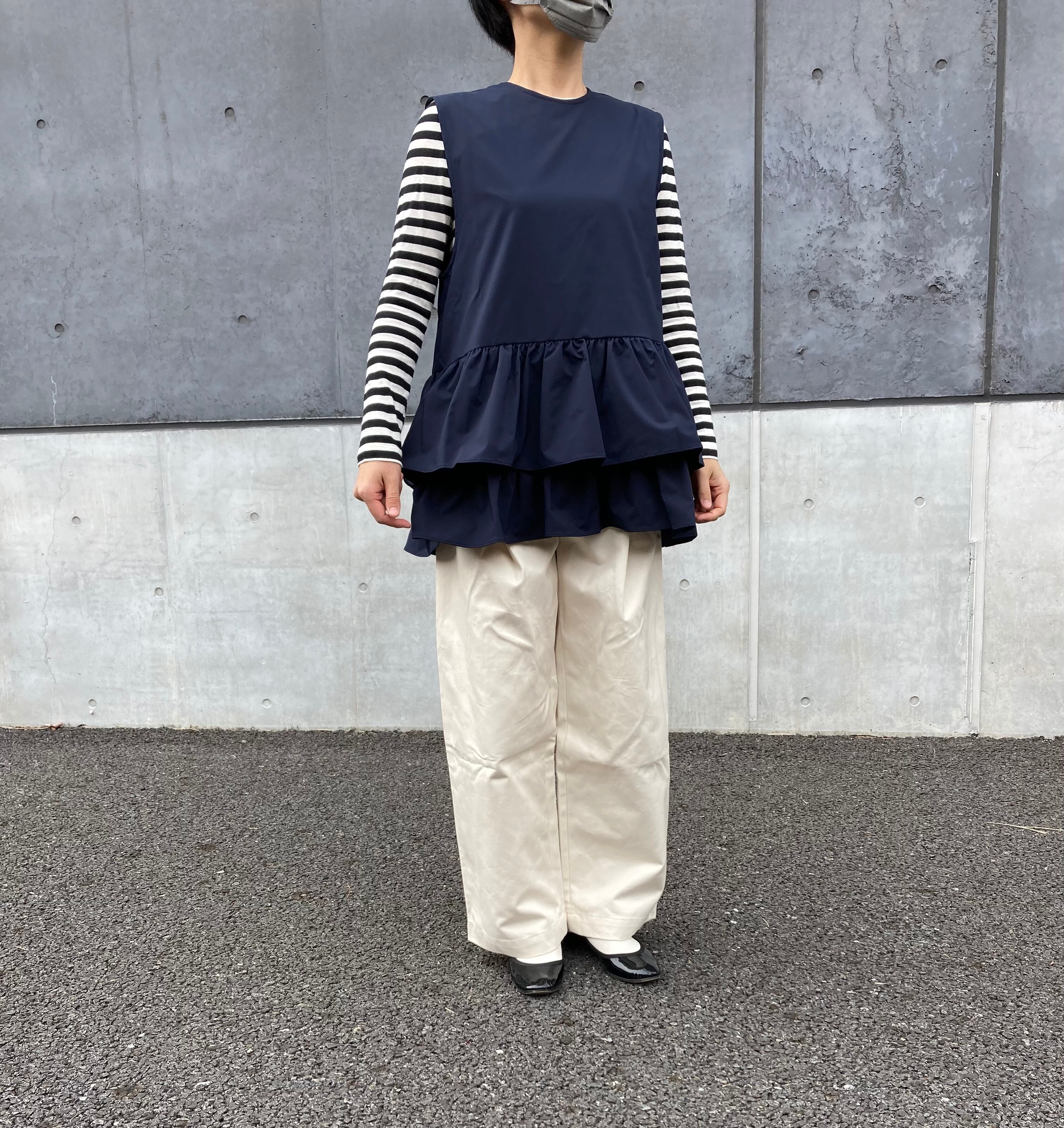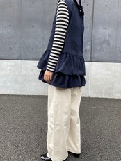 シンプルなニットやブラウス、Tシャツとの重ね着で、大人かわいい着こなしがオールシーズン楽しめます。
