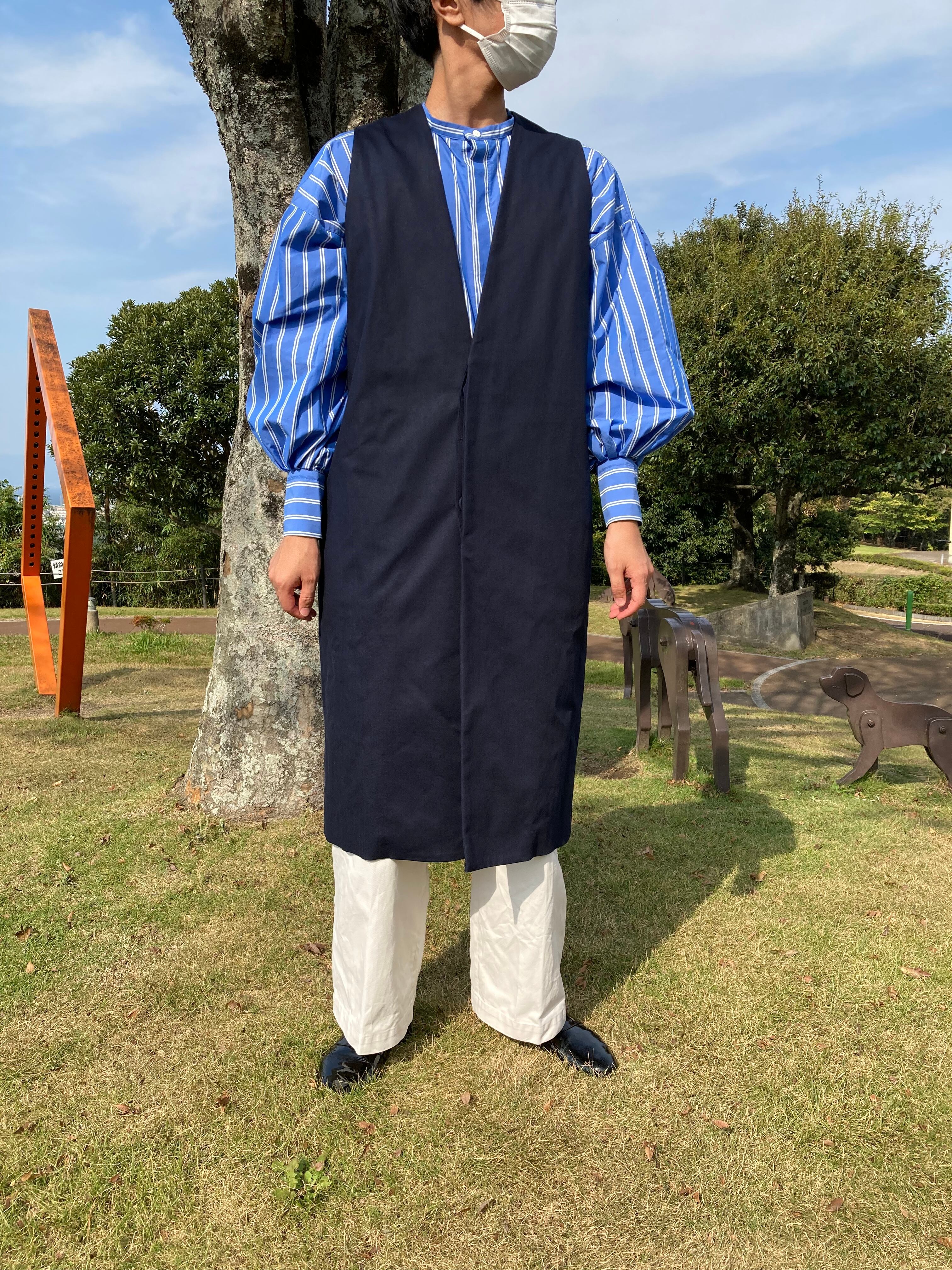 バンドカラーと比翼仕立てのデザインで、シンプルながら存在感のあるアイテムに仕上がっております。