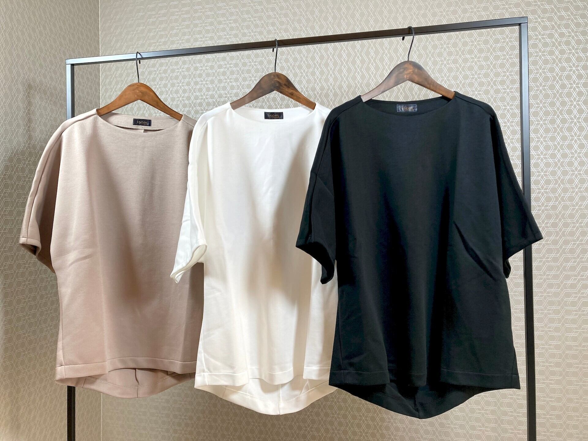 見頃と袖が一体になったドルマンスリーブのカットソーです。