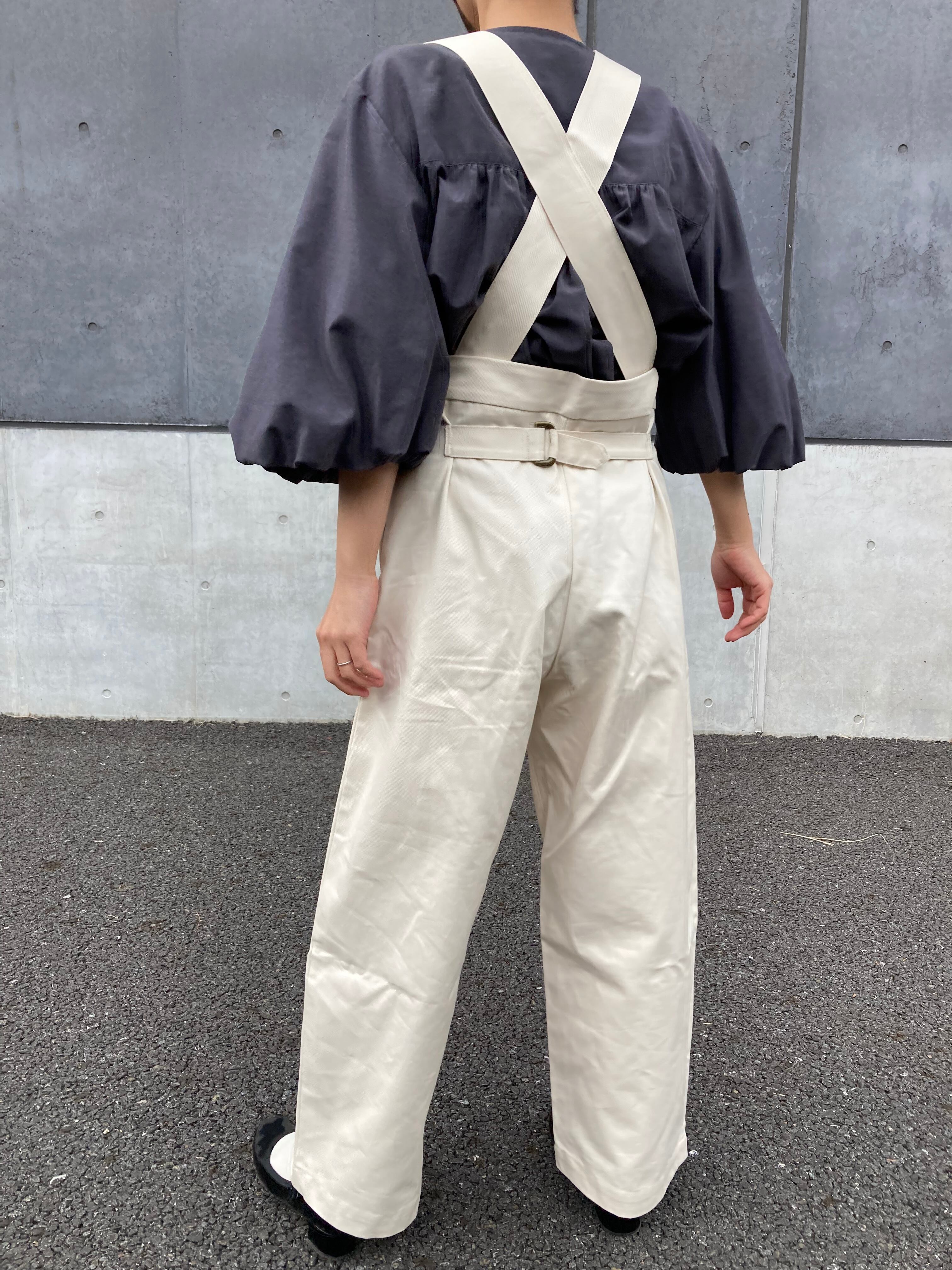 iromサスペンダー付きタックワイドパンツ