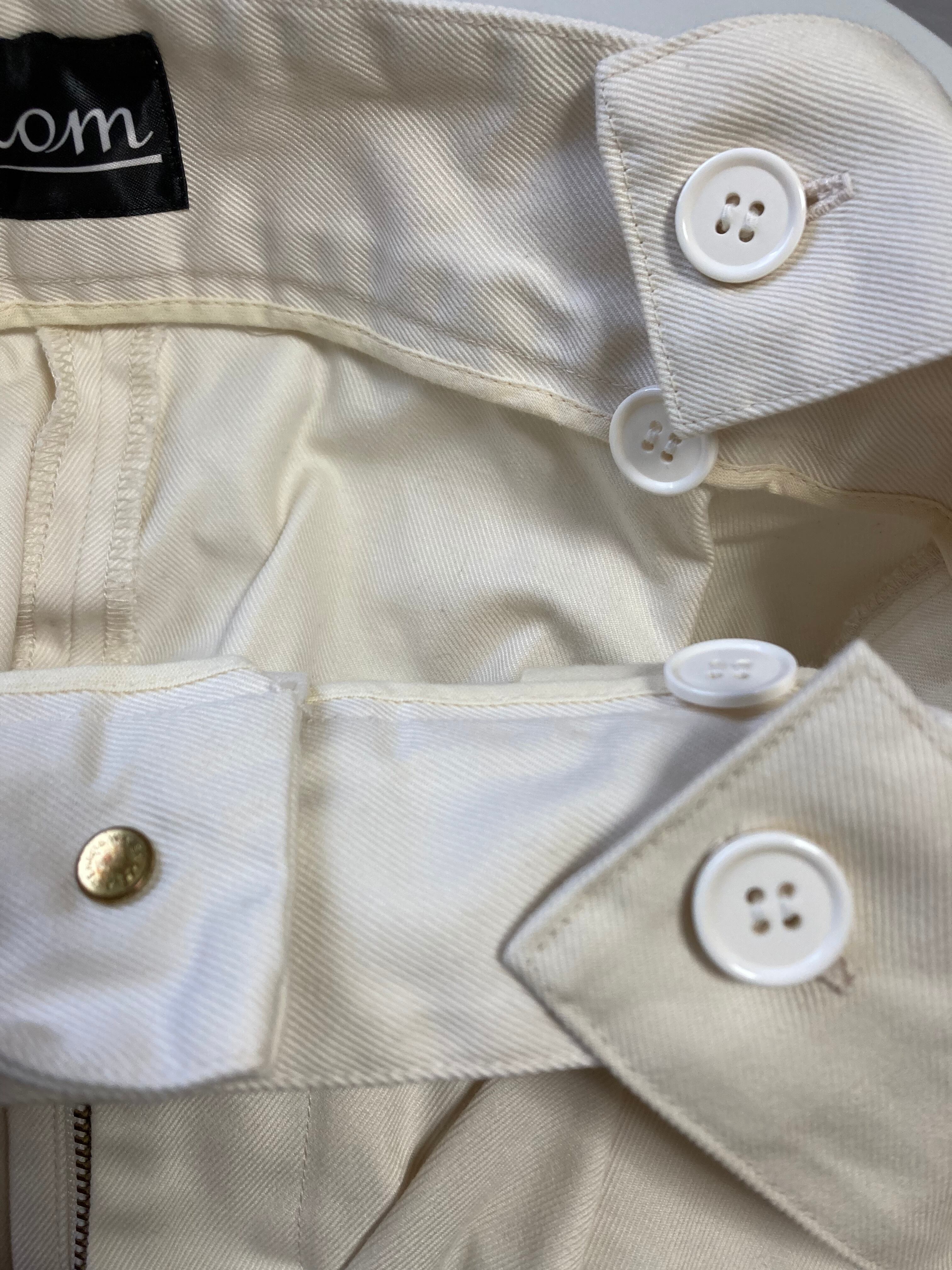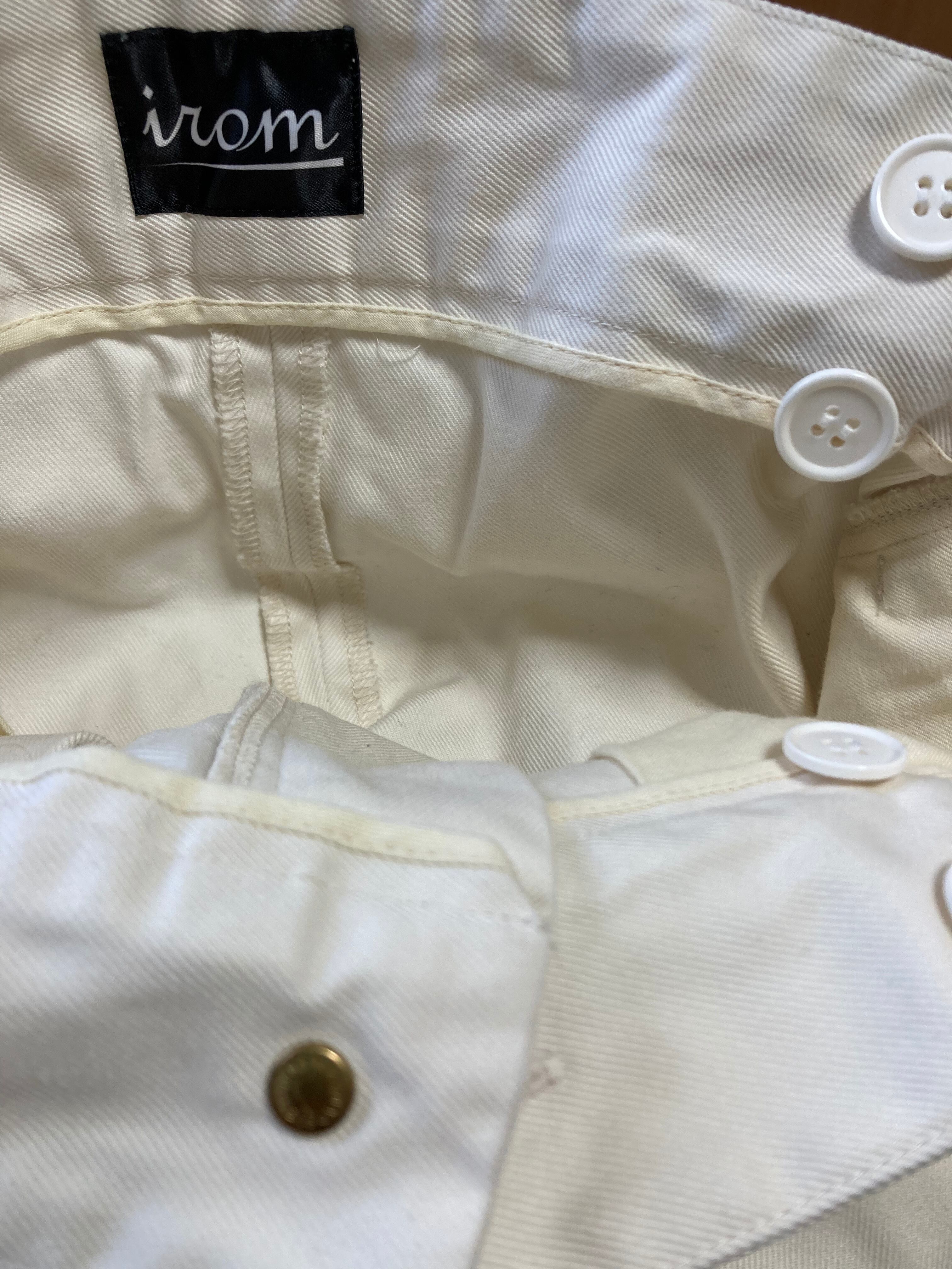 M:ウエスト81㎝ ヒップ 121.1㎝ 前股上 31.7㎝ 後股上 40.5㎝ 股下 65㎝ 裾幅 26㎝ わたり 37.7㎝