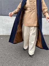 金ボタンやバックベルトがアクセントになっております。